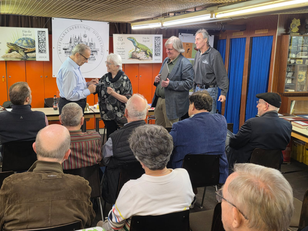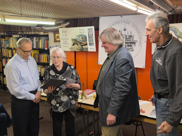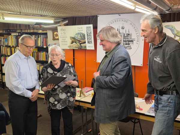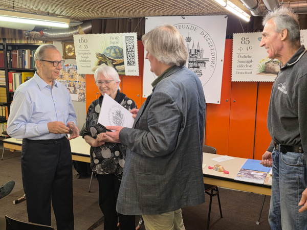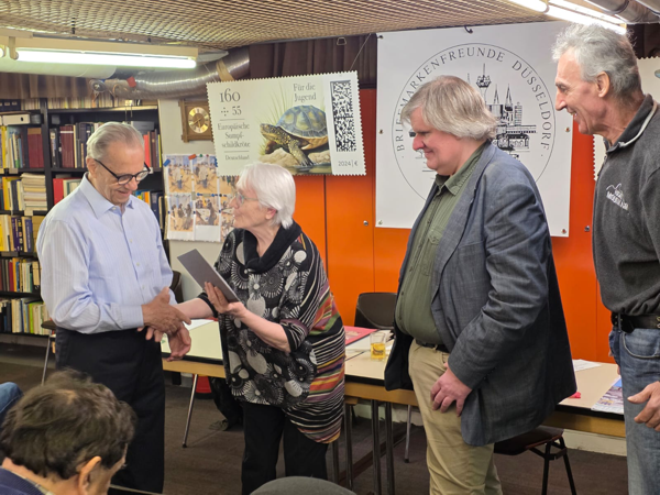 Christian Schlachetzki erhielt die Auszeichnung für seine hervorragenden Leistungen in der organisierten Philatelie und für den Vorsitz bei den Briefmarkenfreunden Düsseldorf e.V., den er fast ein halbes Jahrhundert innehatte.