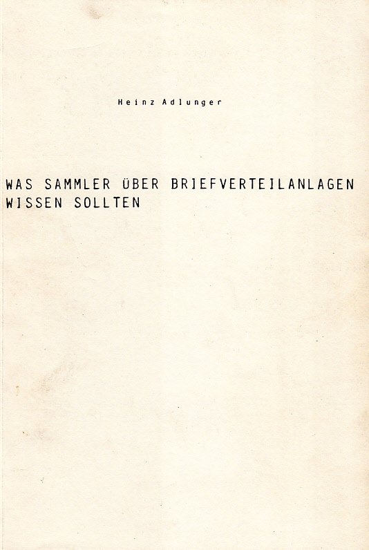 | Was Sammler über Briefverteilanlagen wissen sollten |  | | | | Autor: Heinz Adlunger von: 1989 | | Seiten: 81 als Paperback s/w | | | | STATUS: NUR ZUM AUSLEIHEN |