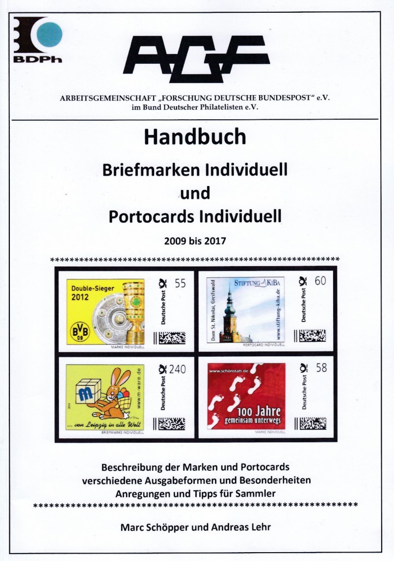 Briefmarken Individuell und Portocards Individuell |  | | | Handbuch der AGF | | Autor: Marc Schöpper und Andreas Lehr von: 2017 | | Seiten: 192 als Paperback | | | | STATUS: AUSGELIEHEN |