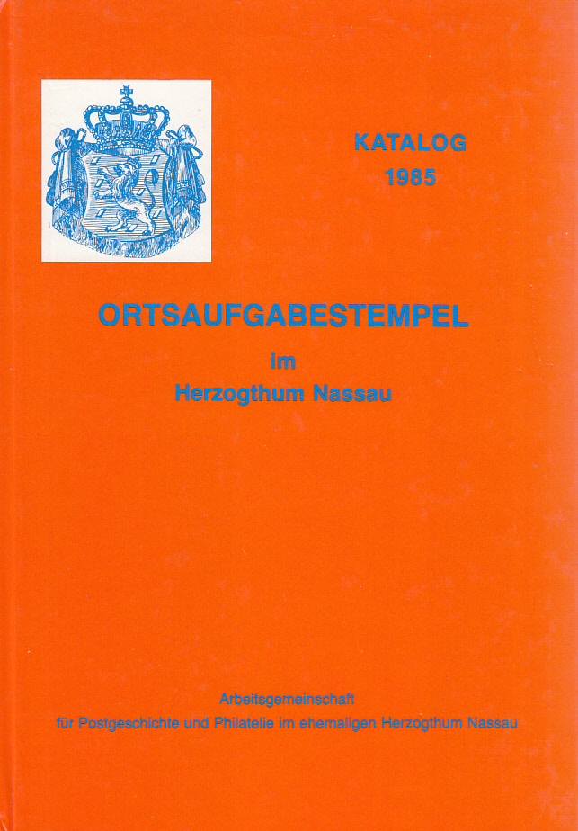 | Ortsaufgabestempel im Herzogthum Nassau |  | | | Katalog | | Autor: ArGe für Postgeschichte und Philatelie im ehemaligen Herzogthum Nassau von: 1985 | | Seiten: 192 als Hardcover | | | | STATUS: NUR ZUM AUSLEIHEN |