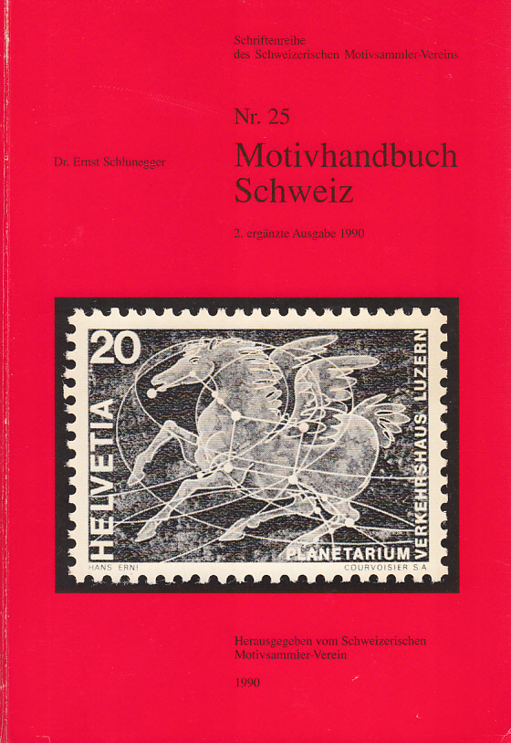 | Motivhandbuch Schweiz Nr. 25 |  | | | 2. ergänzte Ausgabe | | Autor: Schweitzer Motivsammler Verein von: 1990 | | Seiten: 570 als Paperback s/w | | | | STATUS: NUR ZUM AUSLEIHEN |