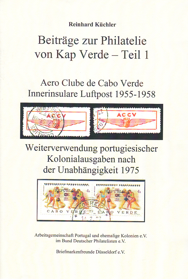 | Beiträge zur Philatelie von Kap Verde - Teil I |  | SONDERDRUCK XI | | Aero Clube de Cabo Verde - Innerinsulare Luftpost 1955-1958 | | Autor: Reinhard Küchler von: 2013 | | Seiten: 60 als DinA 4 - Vierfarbdruck | | | | STATUS: NUR ZUM AUSLEIHEN |