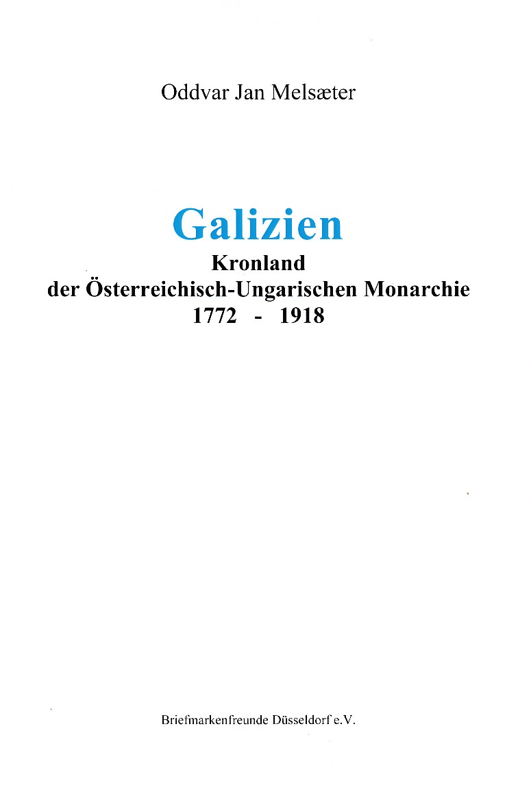 | Galizien - der Österreichisch-Ungarischen Monarchie 1772 - 1918 |  | SONDERDRUCK Sdr. - Nr. IV | | | Autor: Oddvar Jan Melsaeter von: 2009 | | Seiten: 88 als DIN A 4 s/w | | | | STATUS: NUR ZUM AUSLEIHEN |